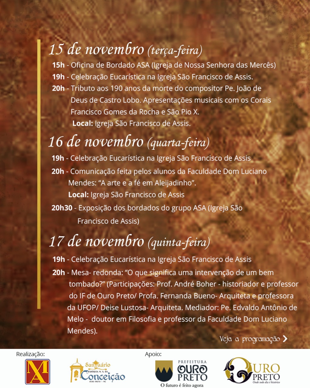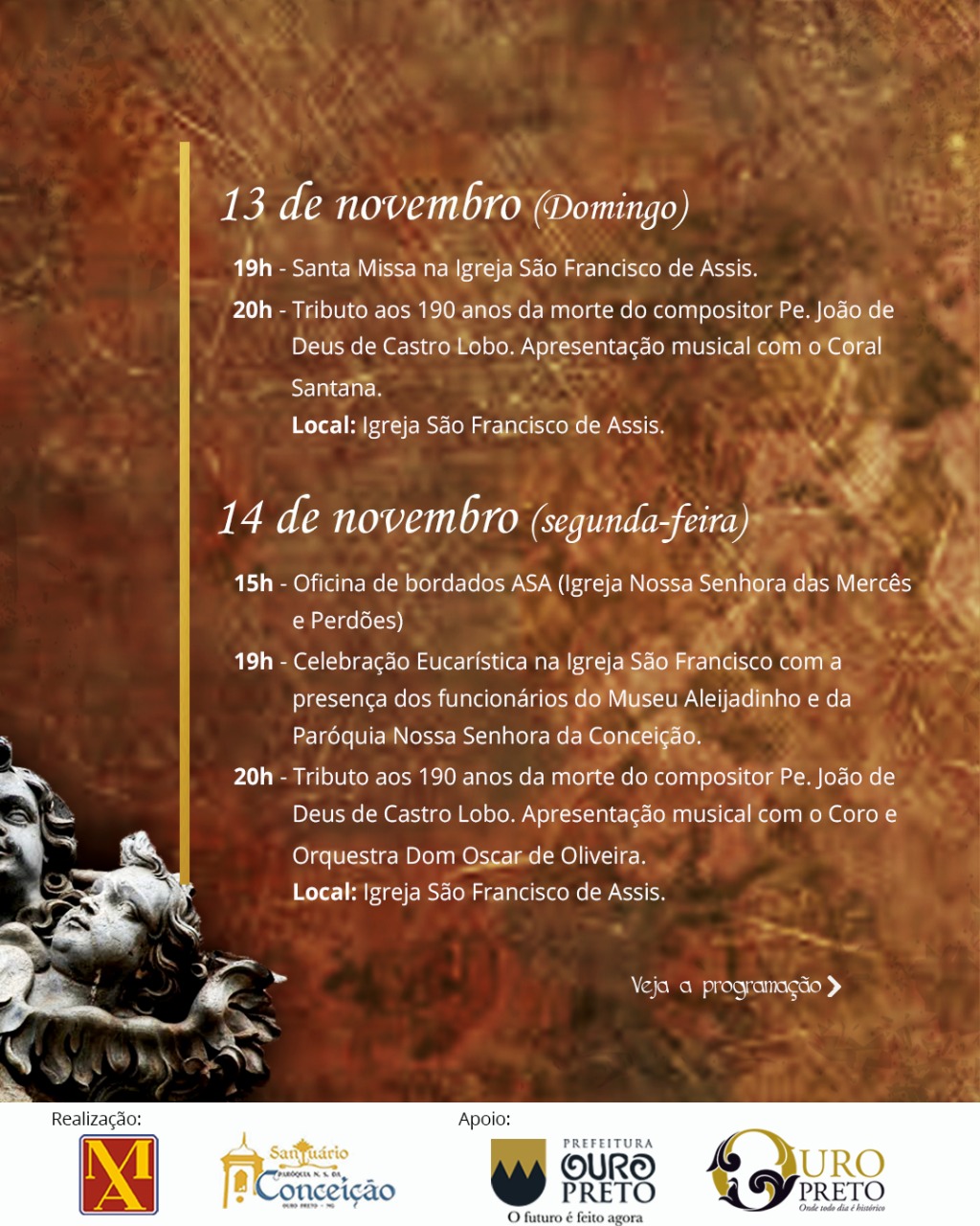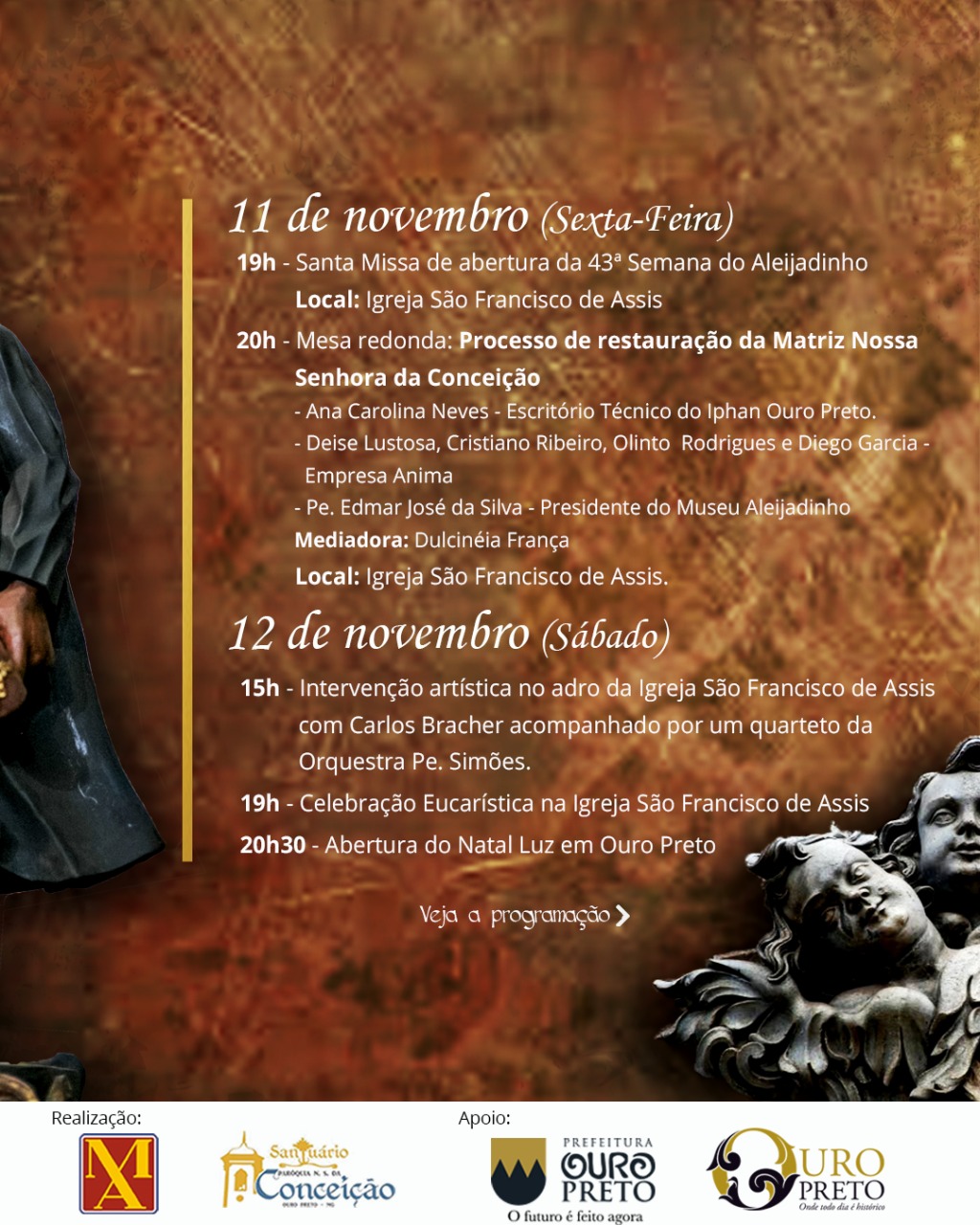 Acompanhe a programação da 43ª Semana do Aleijadinho, realizada pelo Museu Aleijadinho em parceria com a Prefeitura de Ouro Preto.